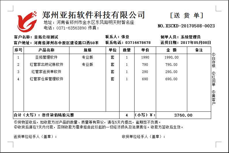 紅管家送貨單打印軟件是一款針對中小型企業(yè)開發(fā)的集送貨管理(發(fā)貨管理)、退貨管理(銷售退貨)、銷售收款(應(yīng)收款管理)等功能為