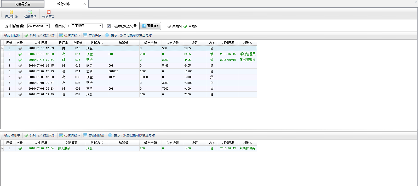 ????銀行對賬功能列表: