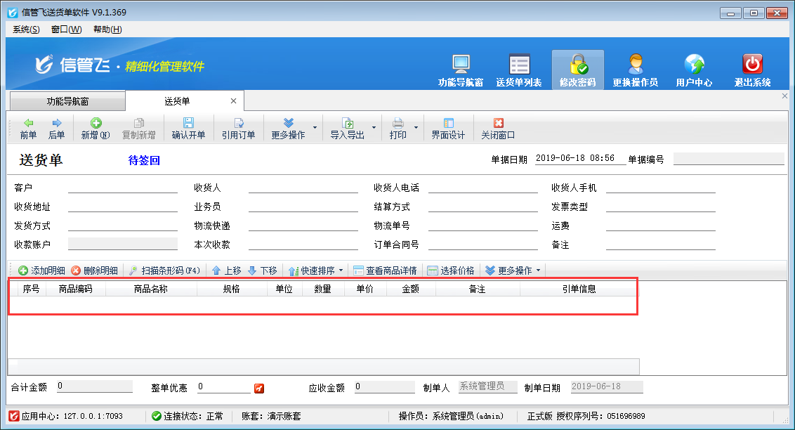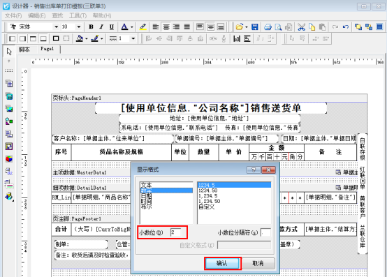 信管飛送貨單軟件、信管飛RMS軟件、信管飛倉(cāng)庫(kù)管理軟件等都支持自定義設(shè)計(jì)打印模板。打印模板設(shè)計(jì)中數(shù)量的小數(shù)位如果需要進(jìn)行修改,可以在打印格式模板設(shè)計(jì)界面進(jìn)行修改。 以信管飛送貨單軟件的模板為例,介紹下如何修改模板中的數(shù)量小數(shù)位顯示格式。 打開(kāi)一個(gè)送貨單,點(diǎn)擊“打印”—》“打印格式設(shè)計(jì)”,在打印格式設(shè)計(jì)界面,選擇示例模板“銷(xiāo)售出庫(kù)單打印模版(三聯(lián)單3)”,點(diǎn)擊“設(shè)計(jì)格式”,進(jìn)入模板設(shè)計(jì)器界面,如下圖所示:圖1 在模板設(shè)計(jì)器界面,單擊“細(xì)項(xiàng)數(shù)據(jù)”中的數(shù)量