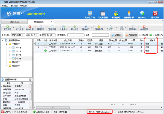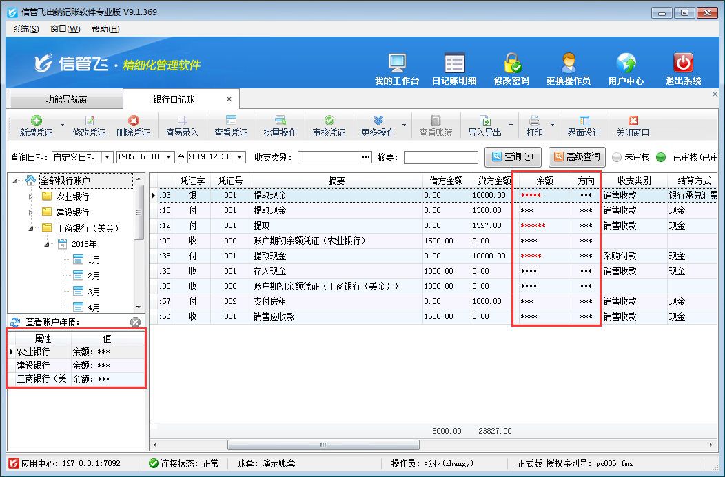 信管飛出納記賬軟件、信管飛RMS標準版和專業版都支持設置操作員不可查看出納日記賬資金賬戶余額權限,本篇文章以信管飛出納記賬軟件專業版為例詳細介紹一下如何設置操作員不可查看出納日記賬資金賬戶余額。 在功能導航窗點“系統管理”→“操作員及授權”即可進入“操作員管理及授權”界面,選中操作員賬號,在“其他操作權限”界面將“不可查看出納日記賬資金賬戶余額”權限勾選上,如下圖一所示,設置操作員賬號“張亞”不可查看出納日記賬資金賬戶余額。圖一 設置操作員權限 設置完成之后,我們使用操作員“張亞”登陸