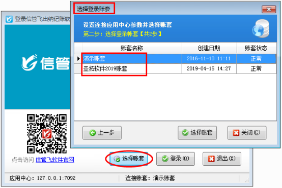 亞拓軟件旗下的信管飛RMS、信管飛倉庫管理軟件、信管飛送貨單軟件、信管飛出納記賬軟件、信管飛票據打印軟件等軟件程序安裝后會顯示兩個圖標,一個是應用中心程序(紅色圖標),一個是客戶端程序(藍色圖標)。這些軟件都含有賬套管理功能,在應用中心里面可以建立多個賬套,已使用的帳套如果不再繼續使用,可以停用帳套,停用帳套后,客戶端程序登錄時無法連接該帳套。我們以信管飛出納記賬軟件專業版為例演示一下如何停用帳套。 應用中心(紅色圖標)打開后會在電腦的右下角顯示,雙擊打開電腦右下角的應用中心圖標,點擊“帳套管理”,如圖1所示,帳套列表一