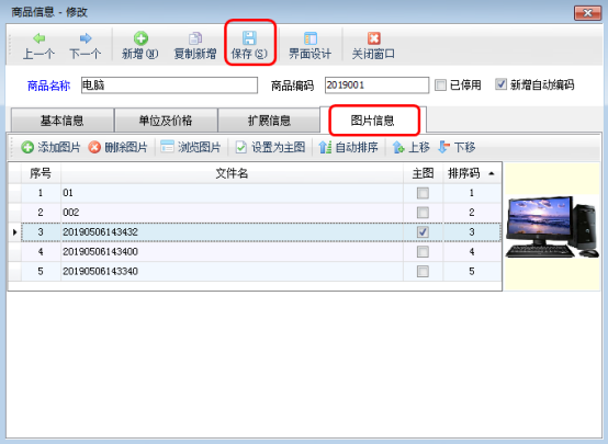 信管飛倉庫管理軟件、信管飛RMS(進銷存軟件)都可以對商品信息進行管理,都支持上傳商品圖片,以便用戶查看商品圖片信息。本篇文章以信管飛倉庫管理軟件為例介紹一下如何上傳商品圖片。 在功能導航窗點“基礎資料”—》“商品信息”即可進入“商品信息”界面,對商品進行新增或修改時可以編輯商品信息、上傳商品圖片信息。以商品“電腦”為例,對商品進行修改,系統彈出“商品信息修改”窗口,點擊“圖片信息”頁面,如圖1所示。圖1 添加圖片:點擊“添加圖片”按鈕,可以選擇已準備好的圖片,支持jpg、png等格式