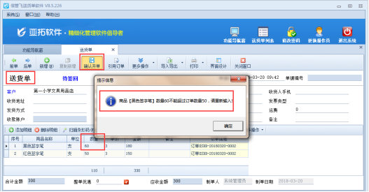 許多用戶的銷售送貨流程如下:客戶先下訂單,訂單下好后,根據訂單進行開送貨單送貨。信管飛送貨單軟件支持開送貨單直接引用訂單,調取訂單中的數據。送貨單引用訂單數據后,可以對引用數據內容進行修改,其中送貨數量是否可以超過訂單數量,支持在軟件中設置參數。下面我們以信管飛送貨單軟件為例介紹下在軟件中如何設置“送貨數量不可超過訂單數量”。 在功能導航窗選擇“系統管理”—》“系統參數配置”—》“業務參數”,進入到業務參數配置界面,勾選上“送貨數量不可超過訂單數量”參數,然后點擊“保存”按鈕保存設置,如下圖1所示