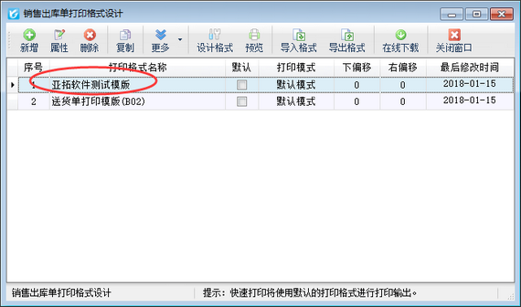 亞拓管理軟件、紅管家倉庫管理軟件、紅管家送貨單軟件、紅管家出納記賬軟件等軟件內內置有多個打印格式模版,并且都支持自定義打印格式模版,可以更方便、靈活的定制打印輸出內容和格式,有時我們會根據不同的情況用到不同的單據打印格式模版,為了更好的區分,本篇文章我們來介紹一下如何修改打印格式模版名稱? 以亞拓管理軟件為例,示范一下如何修改打印格式模版名稱,打開一個已保存的銷售出庫單,在工具欄點擊“打印”—》“打印格式設計”(圖一)打開“銷售出庫單打印格式設計”窗口(圖二),選擇“送貨單打印模版(B01)”,然后在工具欄點擊“屬性”按