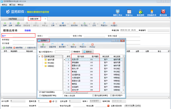 亞拓管理軟件、信管飛倉庫管理軟件、信管飛送貨單軟件開單時都可以直接從客戶信息中選擇已有的客戶進行開單,軟件都支持對客戶信息進行排序。開單選擇客戶時彈出的“選擇客戶”窗口中客戶信息顯示的先后順序如果需要調整,可以到客戶信息中調整。下面我們以亞拓管理軟件專業版為例介紹一下對客戶信息排序的操作方法。 登錄軟件,在功能導航窗點“基礎資料”—》“客戶信息”即可進入“客戶信息”界面,如圖1所示,點“排序設置”按鈕,可進行排序,點“快速排序”會按照字母順序自動排序,包括“按單位編碼排序”、“按單位名稱排序”這兩種快速排序方法;點“上移