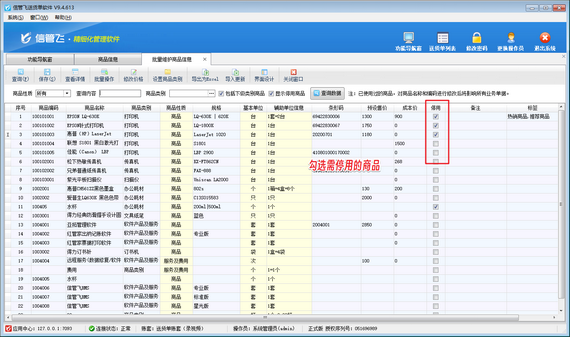 在當今商業(yè)管理中,高效的商品信息管理至關重要。信管飛系列軟件,包括RMS、倉庫管理軟件及送貨單軟件,均提供了強大的商品信息管理功能。其中,對于不再使用的商品,用戶可以輕松將其設置為停用狀態(tài),確保開單過程無誤。本文將重點介紹在信管飛送貨單軟件中如何批量停用商品,提升工作效率。 在實際操作中,面對大量需要停用的商品,逐一處理無疑會耗費大量時間。為此,信管飛送貨單軟件提供了便捷的批量處理功能。用戶只需進入“基礎資料”下的“商品信息”界面,點擊“更多操作”—》“批量維護商品信息”即可進入批量維護商品信息界面。 &nbs