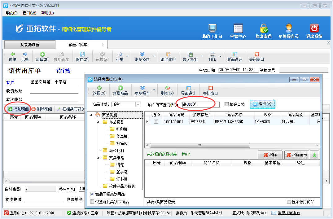紅管家送貨單軟件、亞拓管理軟件、紅管家倉庫管理軟件等支持開銷售單輸入業(yè)余員,以區(qū)分單據是誰所開的。也有客戶不需要開單時候輸入業(yè)務員,對于不需要輸入業(yè)務員的需求,軟件設置系統(tǒng)參數來進行控制業(yè)務員是否為空顯示。 以送貨單軟件為例,示范下如果設置開單業(yè)務員允許為空。軟件安裝完成,系統(tǒng)參數設置默認業(yè)務員不允許為空,正常開送貨單,未在單據主體中輸入“業(yè)務員”,商品輸入完成后點擊確認開單按鈕,會提示“業(yè)務員不能為空”,如下圖1所示:圖1 在功能導航窗選擇系統(tǒng)管理