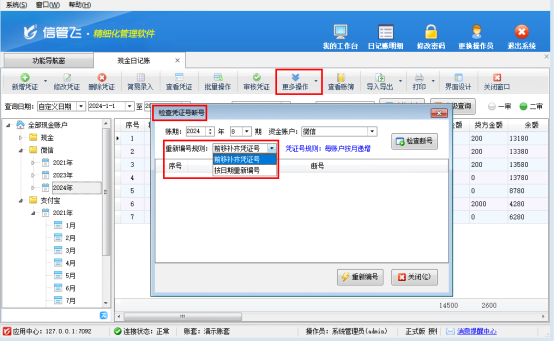憑證斷號:小問題隱藏大隱患 憑證號是財(cái)務(wù)記錄的核心標(biāo)識,其連續(xù)性直接影響賬務(wù)查詢的準(zhǔn)確性與效率。但在實(shí)際工作中,刪除、調(diào)整或人為失誤常導(dǎo)致憑證號斷號,輕則影響賬目美觀,重則引發(fā)數(shù)據(jù)混亂,甚至誤導(dǎo)經(jīng)營決策。如何快速修復(fù)斷號,同時兼顧業(yè)務(wù)邏輯的完整性?傳統(tǒng)手動調(diào)整費(fèi)時費(fèi)力,且易引發(fā)二次錯誤。 信管飛出納軟件:一鍵修復(fù),雙規(guī)則護(hù)航 針對這一痛點(diǎn),信管飛出納軟件推出“檢查憑證號斷號”智能功能,提供前移補(bǔ)齊與按日