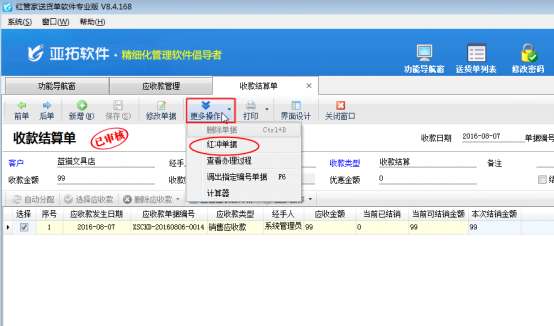 亞拓軟件公司旗下的紅管家送貨單軟件、出納記賬軟件、亞拓管理軟件都支持應收款管理,可以對已收貨款進行核銷。更方便管理貨款,使往來賬更加一目了然。 有客戶在核銷往來賬的時候,有時會出現誤核銷的情況,這個時候想刪除核銷記錄,或者想刪除應收款,這個時候系統會提示“當前應收款記錄為業務單據生成的,無法直接刪除”的提示,我們以新架構的送貨單專業版為例,示例如何刪除已核銷的應收款 選擇軟件導航窗的“業務處理”模塊,打開應收款管理界面,選擇一個已經核銷的“應收款單據”點擊“查看