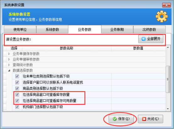 亞拓軟件下的亞拓管理軟件和亞拓倉庫管理軟件都包含“庫存管理”功能模塊,為了更清晰地看到商品的庫存信息,在軟件的“業務參數”中添加了在選擇商品窗口可查看到“商品庫存數量”及“商品可用庫存數量”的設置。 演示視頻觀看鏈接:信管飛RMS軟件如何設置選擇商品時可以查看到庫存數量? 在功能導航窗,點擊“系統參數配置”—》“業務參數”選擇“數據選擇參數”進行設置,(為了更快捷的設置業務參數,可以先把設置業務參數“全部折疊”,直接查找“數據選擇參數”項),勾選參數后記得保存,具體操作如圖