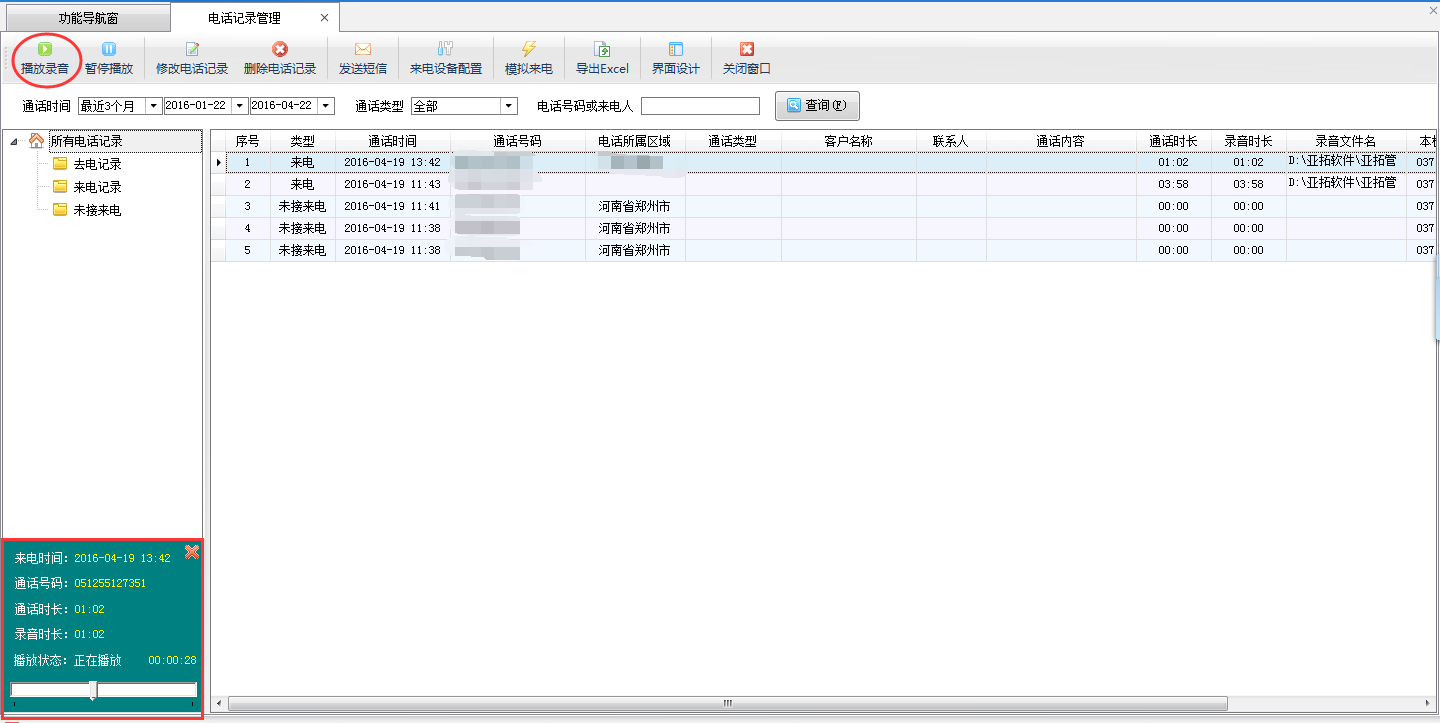 來電彈屏功能為擴展功能模塊,只有購買了此功能模塊的用戶才可以使用來電彈屏功能,這篇文章我們詳細介紹下進銷存管理軟件中的來電彈屏功能是如何使用的。 在功能導(dǎo)航窗點擊“擴展應(yīng)用”—》“電話記錄管理”即可進入來電彈屏功能模塊,其界面如下圖所示: 來電設(shè)備配置:使用來電彈屏功能首先需要外接設(shè)備來電顯示盒,來電顯示盒連接配置好之后需要在軟件內(nèi)啟用來電顯示設(shè)備并設(shè)置線路電話號碼,來電顯示配置如下圖所示:來電設(shè)備配置 模擬來電:此功能可以實際模擬演示來電彈屏功能,