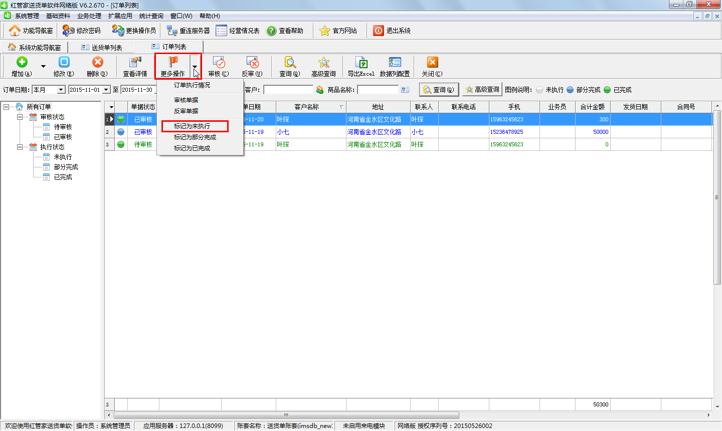 亞拓軟件開發的紅管家送貨單軟件中支持新開送貨單引用新增訂單,但是部分用戶在使用送貨單管理軟件的過程中不知道新增送貨單時如何引用訂單,根據用戶在使用送貨單管理軟件過程中出現的問題,我們整理了以下幾種情況來詳細說明下紅管家送貨單軟件中新增送貨單中如何引用新增訂單? 一、新增訂單之后,訂單未審核,還是處于“待審核”的狀態,此種情況下新開送貨單時是無法引用此訂單的,系統會提示“您選擇的訂單處于‘待審核’狀態,請先在訂單列表中審核訂單!”,如下圖所示。圖一 處于“待審核”的訂單圖二 新開送貨單引用訂單界面 &