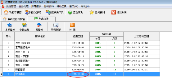 一、期末結賬功能描述 紅管家財務出納記賬系統包括期末結賬的功能,當本期(即本月)的業務已審核處理完畢,就可以進行期末結賬處理。結賬后自動進入下一個賬期(月份),12月份結賬后將進入下一個年度。結賬后如果發現單據錯誤或賬簿數據有誤,可以進行反結賬處理。 點擊主窗口菜單“業務處理”——》“期末結帳”系統進入“期末結帳”窗口,如圖1所示。圖1 期末結賬的界面 本期結帳:在帳戶列表中,選擇一個帳戶,點擊工具欄中的“本期結帳”按鈕即可。已結賬的賬期不允許增加新憑證,也不允許修改原有憑證。如發現錯誤