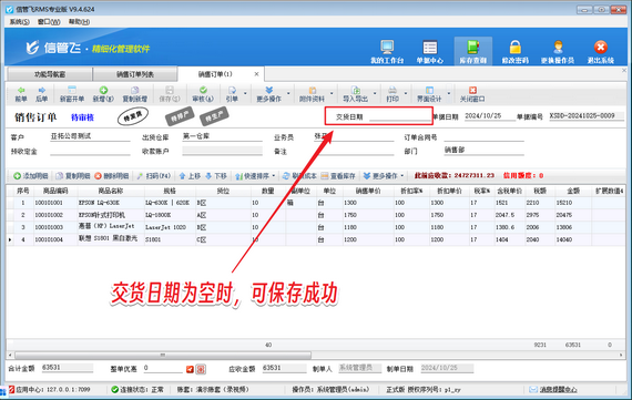 有用戶在使用信管飛軟件時,填開銷售訂單保存不成功,提示“交貨日期不能為空,請輸入”,訂單無法保存,如下圖所示。 演示視頻觀看鏈接:銷售訂單保存時提示“交貨日期不能為空”,訂單無法保存如何解決演示視頻 出現(xiàn)以上問題的原因是:啟用了參數(shù)“訂單保存時交貨日期不能為空”導(dǎo)致。 在功能導(dǎo)航窗點擊“系統(tǒng)管理”—》“系統(tǒng)參數(shù)配置”—》“業(yè)務(wù)參數(shù)”打開業(yè)務(wù)參數(shù)配置界面,在業(yè)務(wù)單據(jù)保存參數(shù)內(nèi)取消勾選“訂單保存時交貨日期不能為空”參數(shù),然后點擊“保存”按鈕保存參數(shù)設(shè)置,