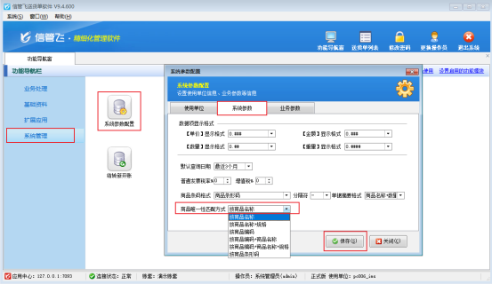 信管飛系列軟件支持開單時(shí)直接錄入新商品,部分用戶在使用軟件時(shí),覺得在商品信息新增維護(hù)之后再開單選擇是比較麻煩的操作方式,想要在開單界面輸入商品名稱保存單據(jù)后,系統(tǒng)商品信息會自動新增為新的商品,如果是已存在的商品在開單界面輸入商品名稱可以直接調(diào)用,如何操作呢?本篇文章以“信管飛送貨單軟件”為例介紹下如何設(shè)置? 第一步:在功能導(dǎo)航窗點(diǎn)擊“系統(tǒng)管理”—》“系統(tǒng)參數(shù)配置”—》“業(yè)務(wù)參數(shù)”,即可進(jìn)入到“業(yè)務(wù)參數(shù)”配置界面,在業(yè)務(wù)單據(jù)相關(guān)參數(shù)內(nèi)勾選“送貨單允許直接錄入新商品”參數(shù),然后點(diǎn)擊“保存”按鈕保存設(shè)置
