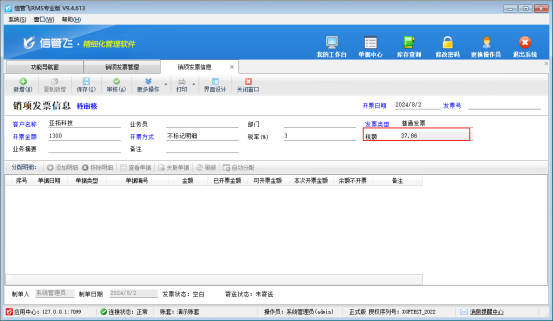 信管飛軟件支持用戶自己設(shè)置數(shù)據(jù)項(xiàng)顯示格式,比如:單價(jià)、金額、數(shù)量等單據(jù)界面顯示小數(shù)位格式,都可進(jìn)行調(diào)整。本文介紹一下進(jìn)銷項(xiàng)發(fā)票單據(jù)中稅額的小數(shù)位如何設(shè)置? 在功能導(dǎo)航窗點(diǎn)擊“系統(tǒng)管理”—》“系統(tǒng)參數(shù)配置”—》“系統(tǒng)參數(shù)”,在“系統(tǒng)參數(shù)”界面可以設(shè)置數(shù)據(jù)項(xiàng)顯示格式,調(diào)整金額顯示格式稅額的也會改變,設(shè)置完之后點(diǎn)擊“保存”按鈕保存配置,如下圖所示: 金額顯示格式設(shè)置為“0.##”,在登記銷項(xiàng)發(fā)票界面,稅額的顯示位數(shù)也就是兩位,可以設(shè)置三位或者四位小數(shù)位,如