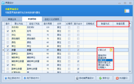 信管飛系列軟件支持單據界面設計,部分用戶在使用軟件過程中,默認開單界面可能與自己需要的界面不一致,軟件支持用戶根據自身業務要求對開單界面進行設置,用戶反饋配置成功后,單據界面不顯示。本文介紹下界面該如何配置? 單據界面配置分為三種情況: 情況一:電腦端界面設計在單據界面,直接點擊界面設計,進入界面設計功能,可以配置電腦端單據主體和單據明細的數據項顯示情況,在顯示列框里勾選顯示,如圖所示: 情況二:移動端