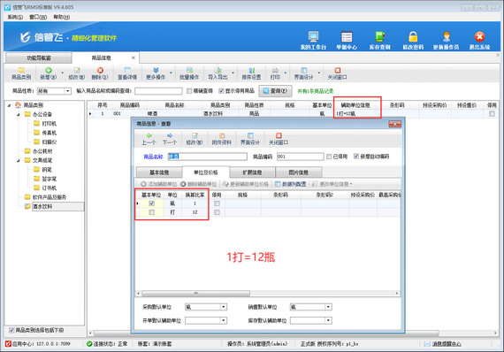 信管飛RMS軟件(標準版和專業版)、信管飛倉庫管理軟件等支持設置商品副單位,副單位和基本單位沒有換算關系,作為雙單位顯示。商品副單位可以在新增商品信息的時候直接錄入。如需要修改并更新已開單單據中的副單位名稱,該如何操作?本文示范下。 演示視頻觀看鏈接:信管飛軟件如何更新已開單商品的副單位名稱? 在功能導航窗點擊“基礎資料”—》“商品信息”,在商品信息界面點擊“修改”,點擊“單位及價格”界面。在更改單位信息下點擊“更改副單位名稱”,如下圖所示:&nbs