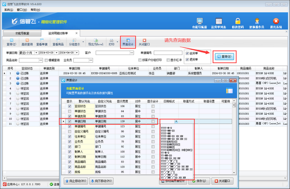 演示視頻觀看鏈接:送貨明細對賬單界面設計內無法設置日期格式如何處理演示視頻 信管飛送貨單軟件支持送貨明細對賬單,可對已開送貨單單據明細進行匯總,同時也支持將送貨明細對賬單導出Excel表格,方便和客戶進行對賬。 送貨明細對賬單界面默認日期格式是顯示時間的,為了導出Excel文件更簡潔明了,軟件也支持設置送貨明細對賬單的日期格式不顯示時間,只顯示出單據日期,如下圖所示。 最近有客戶遇到如下問題,在送貨明細對賬單“界面設計”內設置日期格式時,無法找到“日