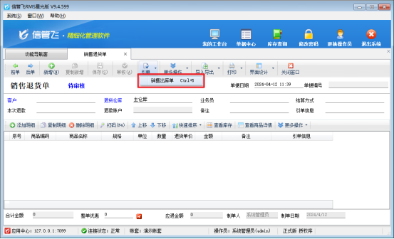 信管飛RMS軟件支持新開銷售退貨單引用銷售訂單,但是部分用戶在使用信管飛RMS軟件的過程中銷售退貨單引用銷售出庫單,本文具體介紹下信管飛RMS軟件退貨單中如何引用銷售出庫單? 此文章相關演示視頻:退貨單如何引用銷售出庫單演示視頻 在功能導航窗點擊“系統管理”—》“系統參數配置”,進入系統參數配置界面,點擊“業務參數”,取消勾選“銷售(采購)退貨單可引用訂單”參數,點擊保存按鈕,如下圖所示: 在功能導航窗