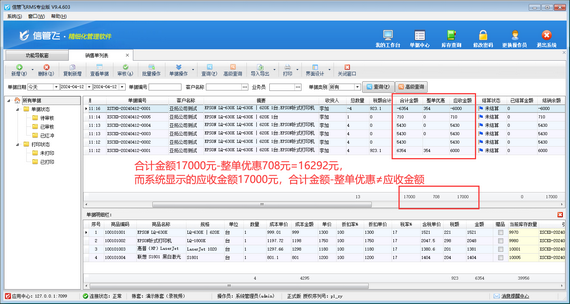 部分用戶在使用信管飛軟件時,存在以下問題,銷售單列表底部“合計金額 - 整單優惠≠應收金額”,無法查明原因,如下圖所示。 本篇文章介紹一下銷售單列表底部“合計金額 - 整單優惠≠應收金額”的原因。 在銷售單列表中,銷售退貨單合計金額和應收金額為負數顯示,合計金額 + 整單優惠=應收金額,而不是合計金額 - 整單優惠=應收金額,如下圖所示。 而銷售出庫單是根據合計金額 - 整單優惠=應收金額進行計算,如下圖所示。 &nb