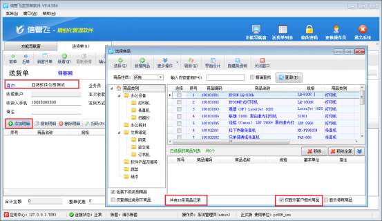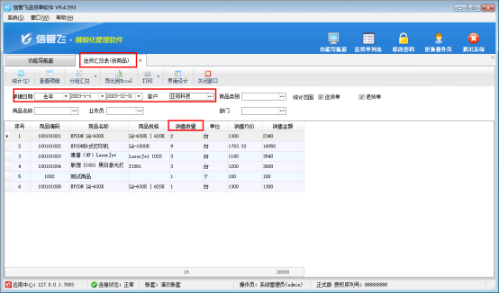 信管飛送貨單軟件是集訂單管理、送貨管理、收款結(jié)算等功能并支持送貨明細(xì)對(duì)賬及業(yè)務(wù)綜合對(duì)賬的送貨單打印軟件,業(yè)務(wù)開(kāi)單后會(huì)自動(dòng)生成相應(yīng)的查詢(xún)報(bào)表,如下圖所示: 送貨匯總表(按商品),可根據(jù)年份匯總每個(gè)商品的銷(xiāo)售數(shù)量。 在功能導(dǎo)航窗點(diǎn)擊業(yè)務(wù)處理,右側(cè)相關(guān)查詢(xún)統(tǒng)計(jì)打開(kāi)“送貨匯總表(按商品)”,執(zhí)行“統(tǒng)計(jì)”后會(huì)顯示當(dāng)前默認(rèn)時(shí)間段內(nèi)的已開(kāi)單商品銷(xiāo)售情況,需要匯總某個(gè)客戶(hù)的一定時(shí)間段內(nèi)商品的銷(xiāo)售數(shù)量,查詢(xún)條件選擇下客戶(hù),如下圖所示: