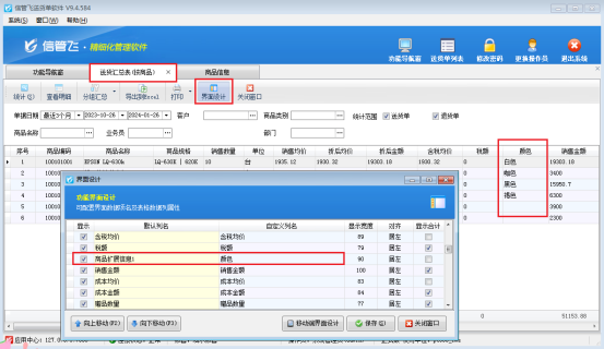 此文章相關(guān)演示視頻:送貨匯總表(按商品)界面如何顯示商品擴(kuò)展信息 在進(jìn)銷(xiāo)存軟件中,商品信息是一個(gè)重要的組成部分,它包括商品的名稱(chēng)、規(guī)格、單位等。信管飛軟件在錄入商品信息時(shí),支持多個(gè)擴(kuò)展信息數(shù)據(jù)項(xiàng),可自定義錄入需要的內(nèi)容,如下圖所示,自定義商品“擴(kuò)展信息1”數(shù)據(jù)項(xiàng)錄入商品“顏色”信息。 本文以信管飛送貨單軟件介紹下送貨匯總表(按商品)界面如何顯示商品擴(kuò)展信息? 在功能導(dǎo)航窗點(diǎn)擊“業(yè)務(wù)處理”—