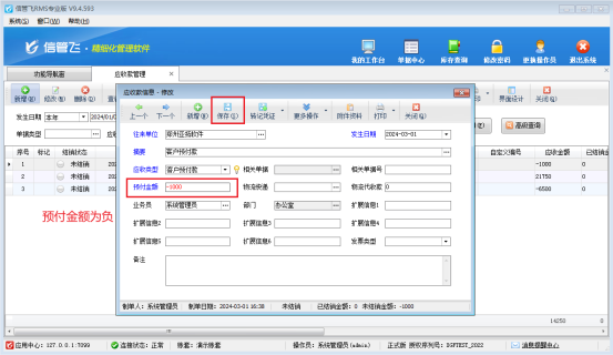 信管飛管理軟件專(zhuān)業(yè)版、標(biāo)準(zhǔn)版、星光版都支持錄入客戶(hù)預(yù)付款,客戶(hù)預(yù)付款是客戶(hù)預(yù)付訂金給我們,這種情況下貨物還沒(méi)有發(fā)出。如果還沒(méi)有形成相應(yīng)的銷(xiāo)售訂單,這時(shí)我們可以直接錄入客戶(hù)預(yù)付款。下面我們以信管飛軟件為例來(lái)演示一下具體的操作步驟。 在功能導(dǎo)航窗點(diǎn)擊“往來(lái)管理”—》“應(yīng)收款管理”打開(kāi)應(yīng)收款管理界面,點(diǎn)擊“新增”按鈕,在應(yīng)收款信息新增界面,應(yīng)收類(lèi)型選擇“客戶(hù)預(yù)付款”,然后再錄入往來(lái)單位、預(yù)付金額(預(yù)付金額為負(fù)數(shù))、摘要等信息,點(diǎn)擊保存按鈕即可,如下圖所示: 【相關(guān)文章】