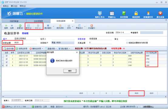 信管飛送貨單軟件、信管飛RMS軟件等支持開單生成對應的應收款,應收款結算支持按客戶分時段結算,比如需要把上月的客戶所有未結銷的應收款全部結算,軟件中操作流程本文以“信管飛RMS軟件”進行示范。 演示視頻觀看鏈接:應收款結算如何按時間段分批結算? 功能導航窗點擊“往來管理”—應收款管理,此界面顯示所有銷售單對應的應收款記錄,選擇未結銷的客戶“亞拓公司測試”應收款記錄,點擊工具欄“收款結算”下的“收款結算”按鈕,如下圖所示: &nb