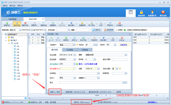 演示視頻觀看鏈接:操作員不可修改其他人員錄入的出納憑證,如何解決演示視頻 有用戶在修改出納日記賬憑證時,會遇到無法修改的情況,系統彈出提示信息“當前憑證為其他操作員錄入的,您沒有權限修改!”,如下圖所示。 出現此問題的原因是:當前登錄的操作員賬號沒有修改其他人員錄入的出納憑證權限,解決方法如下:使用系統管理員賬號登錄軟件,在功能導航窗點擊“系統管理”—》“操作員及授權”打開操作員管理及授權界面,選擇操作員賬號,在“其他操作權限”界面將“可修改其他人員錄入的出納憑證”權限勾選上,然后保存權