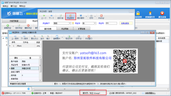 此文章相關演示視頻:操作員沒有查看憑證附件資料的操作權限,如何解決? 有用戶在點擊憑證附件資料時,會遇到無法添加附件資料或查看的情況,系統彈出提示信息“您沒有查看憑證附件資料的操作權限,請與系統管理員聯系!”,如下圖所示。 出現此問題的原因是:當前登錄的操作員賬號沒有查看附件資料權限,解決方法如下:使用系統管理員賬號登錄軟件,在功能導航窗點擊“系統管理”—》“操作員及授權”打開操作員管理及授權界面,選擇操作員賬號,在“其他操作權限”界面將