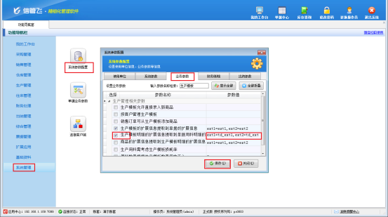 此文章相關演示視頻:如何設置生產模板明細的擴展信息提取到單據用料明細的擴展信息演示視頻 生產模板,即BOM清單(物料清單),可配置每生產一個標準單位的產品需要的原材料種類和數量。有用戶在開生產計劃單或生產任務單時,需要將生產模板明細的擴展信息提取到單據用料明細的擴展信息內,本篇文章介紹一下如何操作。 打開一個生產模板界面,工具欄點擊“界面設計”,模板明細下勾選擴展信息1,勾選之后點擊保存。 在功能導航窗