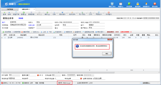 此文章相關演示視頻:操作員修改單據編號時提示“您沒有修改單據編號的權限...”如何解決演示視頻 信管飛送貨單軟件、信管飛RMS、信管飛倉庫管理軟件等都支持開單自動生成單據編號,可根據此單據編號來查詢單據信息。為了更加自定義編號內容,軟件支持修改自動生成的單據編號。部分用戶用操作員賬號登錄時,可能會出現編號無法進行修改,提示“您沒有修改單據編號的權限,請與系統管理員聯系!”的情況,本篇文章以“信管飛RMS為例”介紹下如何解決這個問題。 用操作員“張亞”