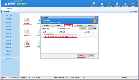 此文章相關(guān)演示視頻:如何在銷售單列表顯示單據(jù)結(jié)銷狀態(tài)? 信管飛RMS軟件支持開銷售單直接生成對應(yīng)的應(yīng)收款。已開過的銷售單會自動保存在軟件中,可以在銷售單列表界面進(jìn)行查看。銷售單審核后生成的應(yīng)收款記錄可以到應(yīng)收款管理中進(jìn)行結(jié)銷,為了更清晰查看到當(dāng)前單據(jù)是否已結(jié)算,軟件支持在銷售單列表界面顯示出當(dāng)前結(jié)算狀態(tài)、已結(jié)算金額以及結(jié)算余額。本篇文章以“信管飛RMS軟件”為例,介紹下如何在銷售單列表界面顯示單據(jù)的結(jié)銷狀態(tài)。 首先需要啟用相關(guān)參數(shù),在功能導(dǎo)航欄點(diǎn)擊“