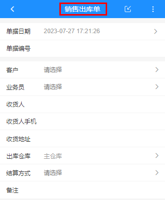 信管飛系列軟件支持電腦端和微信端使用,微信端開單后電腦端可同步查看,微信端界面默認已配置好,如需要隱藏或者添加其他數據項,需要在電腦端進行配置,本文示范下如何配置微信端的界面顯示? 演示視頻觀看鏈接:信管飛軟件微信端界面顯示如何配置演示視頻 以“銷售出庫單單據主體項”示范,功能導航窗點擊銷售管理,打開銷售出庫單,點擊工具欄界面設計三角符號下的“移動端界面設計”打開移動端界面設計界面,(或者直接打開界面設計,在界面設計下方打開移動端界面設計),如下圖所