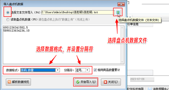 在工業現代化的今天,避免不了對一些貨物進行盤點,盤點時僅靠人工清點那毫無疑問是費時費力,盤點機的使用可以極大程度上提高數據盤點的效率,可以有效提高人們對于數據分析的效率,更加能夠提高人們工作的質量。 有用戶在使用盤點機盤點數據完成后,需要將盤點數據快速導入到軟件,本篇文章介紹一下信管飛系列軟件如何導入盤點機數據? 演示視頻:信管飛軟件如何導入盤點機數據演示視頻 以發貨操作為例,盤點機盤點完成后,可以將盤點數據導出,導出格式為TXT文件,如下圖所示。 &