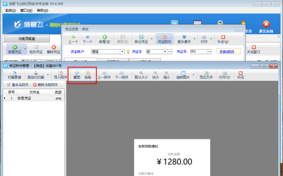信管飛出納記賬軟件在新增或者修改憑證信息時,支持添加文檔、圖片等憑證附件資料,可掃描或導入與出納憑證相關的電子文件,方便用戶更全面、直接地查詢日記賬憑證的全過程,有利于企業對日記賬憑證的管理,最新版本優化了憑證附件的導入方式,支持直接桌面導入文件和粘貼功能,本文進行示范下如何操作? 演示視頻鏈接:憑證附件支持粘貼圖片或者拖動文件方式上傳的出納軟件 功能導航窗點擊出納管理,新增出納憑證并保存,點擊憑證附件,在憑證附件界面可直接拖動桌面文件進行導入。也可