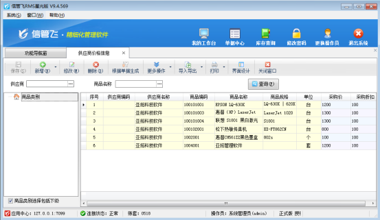 此文章相關演示視頻:如何導入供應商價格信息? 我們在采購同一種商品時,選擇不同的供應商,采購價格也會有所不同,供應商價格信息功能主要用于管理不同商品的不同供應商最近價,以實現對不同供應商的采購價格進行跟蹤管理。 系統支持按供應商以及按商品兩種方式添加供應商價格信息,本文以信管飛rms軟件為例,介紹如何導入供應商價格信息。 在功能導航欄“基礎資料”---供應商價格信息,進入供應商價格維護界面,點擊新增,按