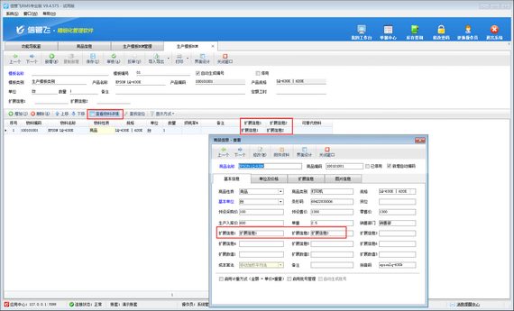 演示視頻觀看鏈接:如何設置商品的擴展信息提取到生產模板明細的擴展信息演示視頻 生產模板,即BOM清單(物料清單),可配置每生產一個標準單位的產品需要的原材料種類和數量。有用戶在填開生產模板時,需要將商品的擴展信息復制到生產模板明細的擴展信息內顯示,本篇文章介紹一下操作方法。 在功能導航窗點擊“系統管理”—》“系統參數配置”—》“業務參數”打開業務參數配置界面,然后在生產管理相關參數中打鉤啟用“商品的擴展信息提取到生產模板明細的擴展信息”參數,參數值輸入相應提取的擴展信息編號,如提取擴展信息1和擴展信