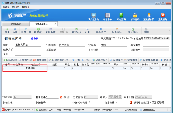 此文章相關(guān)演示視頻:如何設(shè)置新開送貨單時添加商品后自動增加新行演示視頻 信管飛RMS軟件、信管飛倉庫管理軟件、信管飛送貨單軟件等都支持開單直接添加商品明細(xì),部分用戶在剛開始使用軟件時,開單添加一個商品后,不清楚如何在單據(jù)明細(xì)內(nèi)繼續(xù)增加新的商品信息,如下圖所示,此問題在鍵盤上面按方向下鍵即可在單據(jù)明細(xì)中增加一行新行,另外軟件也支持設(shè)置在單據(jù)明細(xì)中添加商品后自動增加新行,本文以信管飛RMS軟件為例介紹下新開單據(jù)添加商品后自動增加新行如何設(shè)置? 在功能導(dǎo)航