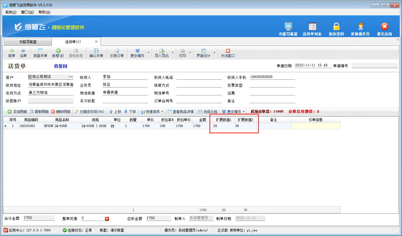 信管飛送貨單軟件、信管飛rms、信管飛倉庫管理軟件等支持開銷售單錄入收貨人信息,便于查詢單據(jù)商品是哪位客戶收到的貨物。也有客戶不需要開單時候輸入收貨人,對于不需要錄入收貨人信息的需求,軟件設(shè)置是否為必填項來進(jìn)行控制收貨人是否為空顯示。 以送貨單軟件為例,示范下如何設(shè)置開單收貨人允許為空。送貨單界面設(shè)置收貨人是必填項,正常開送貨單,未在單據(jù)主體中輸入“收貨人”,商品輸入完成后點(diǎn)擊確認(rèn)開單按鈕,會提示“收貨人不能為空”,如下圖1所示:圖1 在送貨單開單界面—》界面設(shè)計