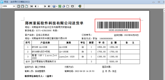 信管飛系列軟件支持自定義設(shè)計(jì)打印模板,有用戶需要打印模板的單據(jù)編號(hào)以條形碼形式進(jìn)行顯示,本文以“信管飛送貨單軟件”為例示范下如何添加? 功能導(dǎo)航窗點(diǎn)擊“業(yè)務(wù)處理”—》“新開(kāi)送貨單”,新增并保存一張送貨單單據(jù),工具欄“打印”下點(diǎn)擊“打印格式設(shè)計(jì)”,在打印格式設(shè)計(jì)界面選擇模板點(diǎn)擊“設(shè)計(jì)格式”進(jìn)入打印模板設(shè)計(jì)器界面,示例模板:送貨單打印模版(B02),如下圖所示: 內(nèi)置模板單據(jù)編號(hào)是文本框顯示,預(yù)覽圖如下圖所示: &nbs