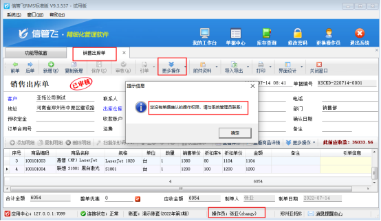 信管飛RMS軟件最新版支持在原有審核單據(jù)基礎(chǔ)上添加單據(jù)確認(rèn)功能,單據(jù)確認(rèn)后無(wú)法再修改,已審核未確認(rèn)可以繼續(xù)反審修改單據(jù),未避免確認(rèn)功能操作員誤操作,軟件支持設(shè)置操作員的單據(jù)確認(rèn)權(quán)限,本文以“信管飛RMS軟件”為例進(jìn)行示范。 演示視頻觀看鏈接:信管飛RMS軟件如何控制操作員的單據(jù)確認(rèn)權(quán)限演示視頻 功能導(dǎo)航窗點(diǎn)擊“系統(tǒng)管理”—》“操作員及授權(quán)”,在操作員及授權(quán)界面,選擇操作員“張亞”,功能模塊權(quán)限選擇“其他操作權(quán)限”,找到權(quán)限“可對(duì)單據(jù)進(jìn)行確認(rèn)”需要勾選