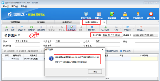 信管飛倉(cāng)庫(kù)管理軟件是集“采購(gòu)管理、銷售管理、庫(kù)存管理”等為一體的進(jìn)銷存軟件,軟件默認(rèn)開(kāi)單自動(dòng)保存在軟件中,有用戶需要把之前已開(kāi)單據(jù)按月進(jìn)行鎖定,沒(méi)有問(wèn)題的單據(jù)不再允許被修改,在軟件中如何可以實(shí)現(xiàn)?本文針對(duì)此問(wèn)題進(jìn)行示范下操作。 在功能導(dǎo)航窗點(diǎn)擊“基礎(chǔ)資料”—》“期末結(jié)賬”,進(jìn)入期末結(jié)賬界面,本文示例鎖定2022年6月份的單據(jù),在期末結(jié)賬界面,選擇賬期年份2022年6月,工具欄點(diǎn)擊“結(jié)賬”按鈕進(jìn)行操作結(jié)賬,結(jié)賬完成后,已結(jié)賬處顯示已勾選,賬期進(jìn)入2022年7月份,如下圖所示: