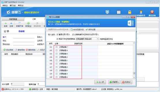 信管飛軟件支持通過Excel導入數(shù)據(jù),通過Excel數(shù)據(jù)導入可以將數(shù)據(jù)方便快捷的導入到軟件中,省去了使用初期大量的數(shù)據(jù)的錄入所要消耗的時間及人力物力,并避免人為錄入的誤差,使數(shù)據(jù)錄入的簡單、準確、高效。然而,部分客戶使用的擴展信息字段比較多在導入明細數(shù)據(jù)時可能會遇到擴展信息10之后的擴展字段不顯示。下面我們以“信管飛送貨單軟件”為例,介紹下出現(xiàn)這種情況如何解決? 解決方法:在導入Excel數(shù)據(jù)界面,鼠標點擊空白地方右鍵,選擇刷新數(shù)據(jù)項,被隱藏的擴展信息及其他字段都會顯示出來,如:商品擴展信息1、擴