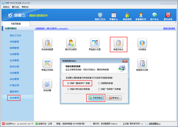 信管飛系列軟件支持本地版及云賬套版,均支持管理多個賬套,在使用軟件之前可先維護好基礎資料數據,如有多個賬套,且基礎資料數據一致的情況下,不需要重復整理每個賬套的基礎資料數據,軟件支持新建賬套快速復制已有賬套的基礎資料數據,本篇文章介紹一下進銷存軟件云賬套版新建賬套如何快速復制已有賬套的基礎資料數據? 一、對已有賬套進行備份,并將備份文件下載到本地。 登錄已有賬套,然后在功能導航窗中點擊“系統管理”—》“賬套備份還原”,在打開的“賬套備份還原”窗口,執行備份并將備份文件下載到本地存儲,如