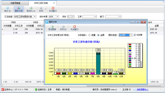 出納記賬軟件專業(yè)版支持計件工資管理功能,可以對公司內(nèi)部根據(jù)計件進行核算工資的員工工資進行管理,提高了企業(yè)管理效率。計件工資匯總表可根據(jù)統(tǒng)計類型、統(tǒng)計年度、月份、工序等條件來進行統(tǒng)計所有員工的計件工資情況,包括員工姓名、工序、計件數(shù)量、計件工資等數(shù)據(jù),本文詳細介紹一下如何查詢員工計件工資匯總表? 在功能導航窗點擊“綜合管理”—》“計件工資匯總表”即可進入員工計件工資匯總表界面,如下圖所示。 員工計件工資匯總表界面支持根據(jù)匯總類型、統(tǒng)計年度、月份、工序等條件來進行統(tǒng)計所有員工的計件工資情況