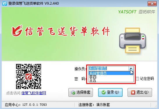 信管飛RMS(進銷存管理軟件)、信管飛倉庫管理軟件、信管飛出納記賬軟件、信管飛送貨單軟件等都支持設置多個操作員登錄軟件,操作員及授權實現(xiàn)對操作員的管理和權限分配。如果操作員離職了,軟件登錄窗口選擇操作員的列表中如何刪除此操作員呢?下面我們以信管飛送貨單軟件為例介紹一下如何刪除用不到的操作員。 以刪除操作員“張三”為例,軟件登錄窗口選擇操作員的列表中包含此操作員。如下圖所示:圖1 使用系統(tǒng)管理員賬號登錄軟件,在功能導航窗點擊“系統(tǒng)管理”—》“操作員及授權”即可進入到操作員管理及授權界面,