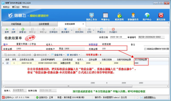 收款結(jié)算單用來登記收款信息(收款對象即客戶、收款賬戶、收款金額、經(jīng)手人等),并結(jié)銷應(yīng)收款記錄。本篇文章以信管飛RMS軟件為例演示一下對應(yīng)收款進(jìn)行收款結(jié)算的操作步驟。 在功能導(dǎo)航窗點(diǎn)擊“往來管理”—》“應(yīng)收款管理”可以打開應(yīng)收款管理界面,應(yīng)收款管理是對包括銷售應(yīng)收款、客戶預(yù)付款、銷售退貨應(yīng)退款、期初應(yīng)收款等各類應(yīng)收款項(xiàng)的集中管理。應(yīng)收款記錄一般由銷售出庫單自動(dòng)生成,其類型為“銷售應(yīng)收款”,或者由銷售退貨單自動(dòng)生成,其類型為“銷售退貨應(yīng)退款”。在應(yīng)收款管理中可以查看應(yīng)收款記錄對應(yīng)的業(yè)務(wù)單據(jù)以及應(yīng)收款詳