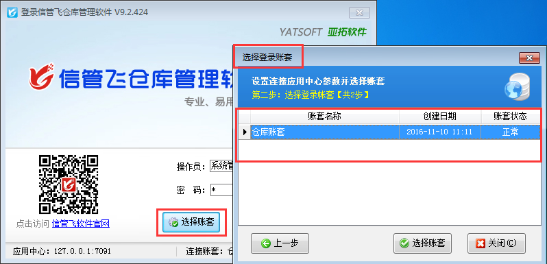 信管飛RMS、信管飛倉庫管理軟件、信管飛送貨單軟件、信管飛出納記賬軟件、信管飛票據(jù)打印軟件等軟件都含有賬套管理功能,在應(yīng)用中心內(nèi)支持建立多個(gè)賬套,已使用的帳套如果不再繼續(xù)使用,可以停用帳套,停用帳套后,客戶端程序登錄時(shí)將無法再連接該帳套。本文我們以信管飛倉庫管理軟件為例演示一下如何停用帳套。 應(yīng)用中心(紅色圖標(biāo))程序運(yùn)行后會在電腦桌面的右下角顯示,雙擊即可打開應(yīng)用中心主界面,點(diǎn)擊“帳套管理”,如下圖所示,帳套列表一共有兩個(gè)帳套啟用,現(xiàn)在我們對第二個(gè)帳套“演示賬套0306”進(jìn)行停用。選擇帳套后,點(diǎn)擊“修改”按鈕,系統(tǒng)彈出修